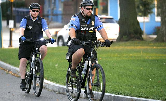 Officers patrol by foot patrol, trained bike patrol units, and a vehicle patrol unit for maximum mobility and coverage around campus and to ensure a quick response to all buildings, at all times.